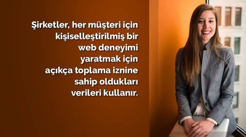 Şirketler, her müşteri için kişiselleştirilmiş bir web deneyimi yaratmak için açıkça toplama iznine sahip oldukları verileri kullanır. Ardından, müşterinin mobil uygulamalar, e-postalar, dijital reklamlar ve web sitelerindeki deneyimini coğrafi konum, site davranışı, geçmiş satın almalar ve çok daha fazlasını kullanarak uyarlarlar.